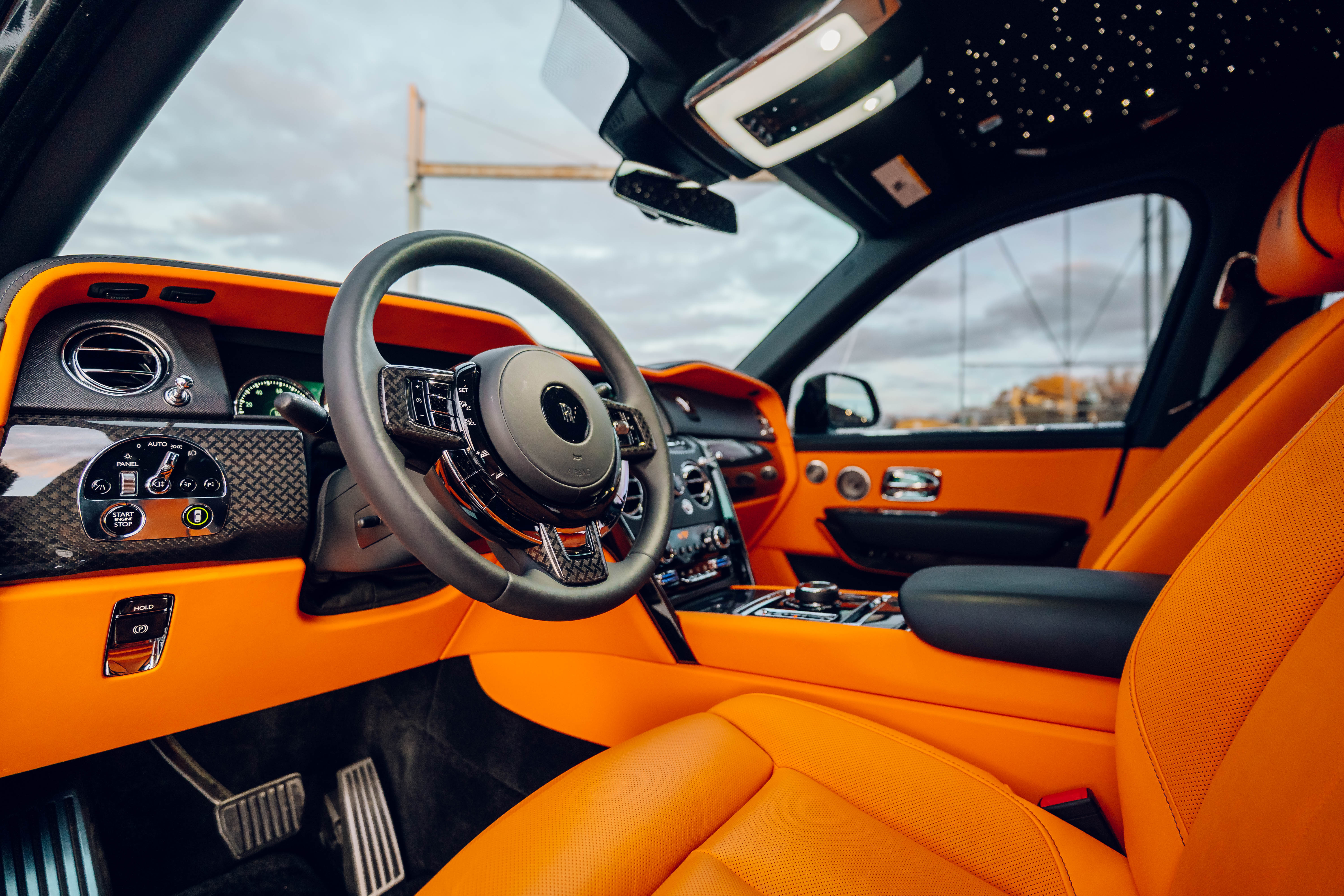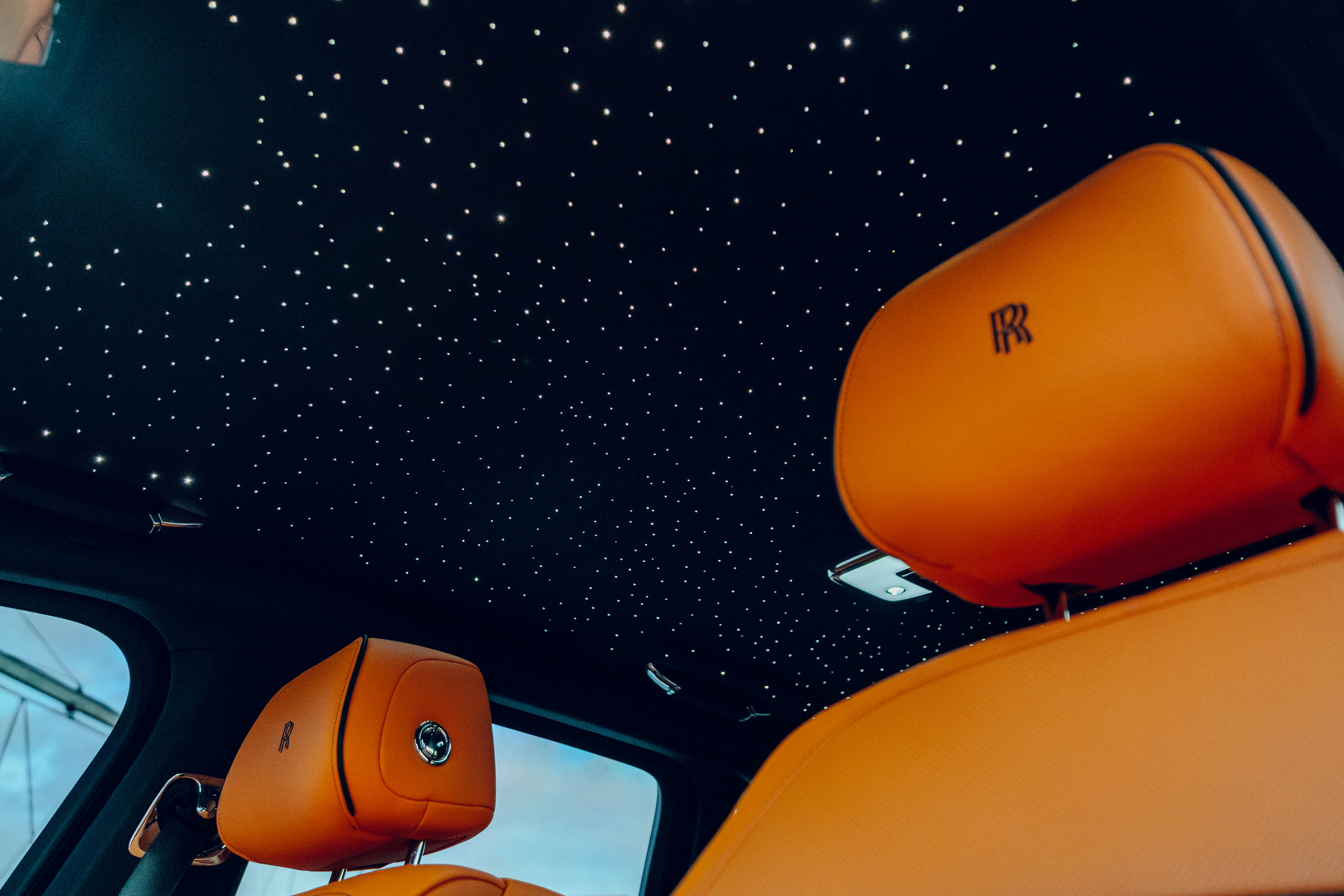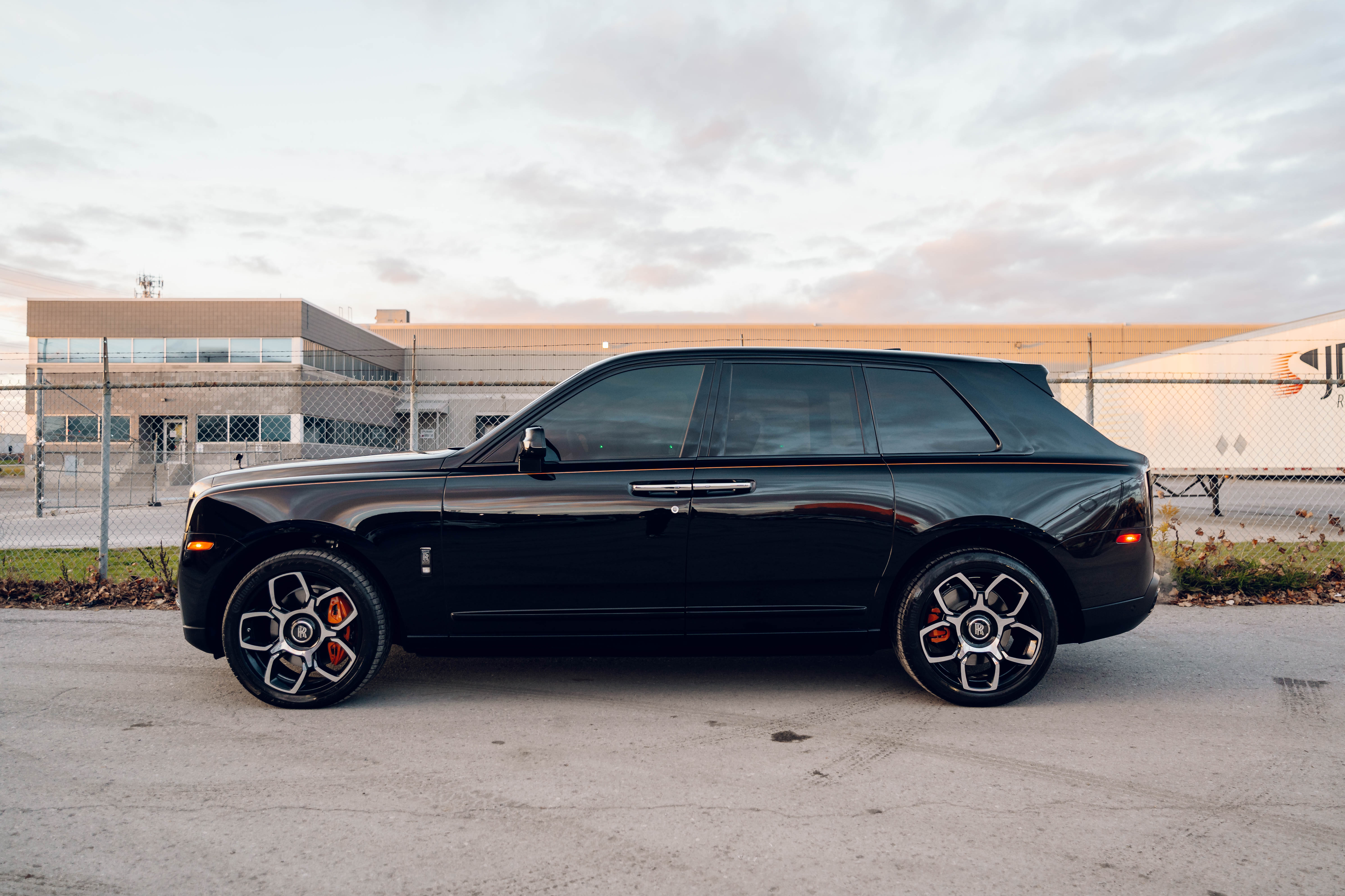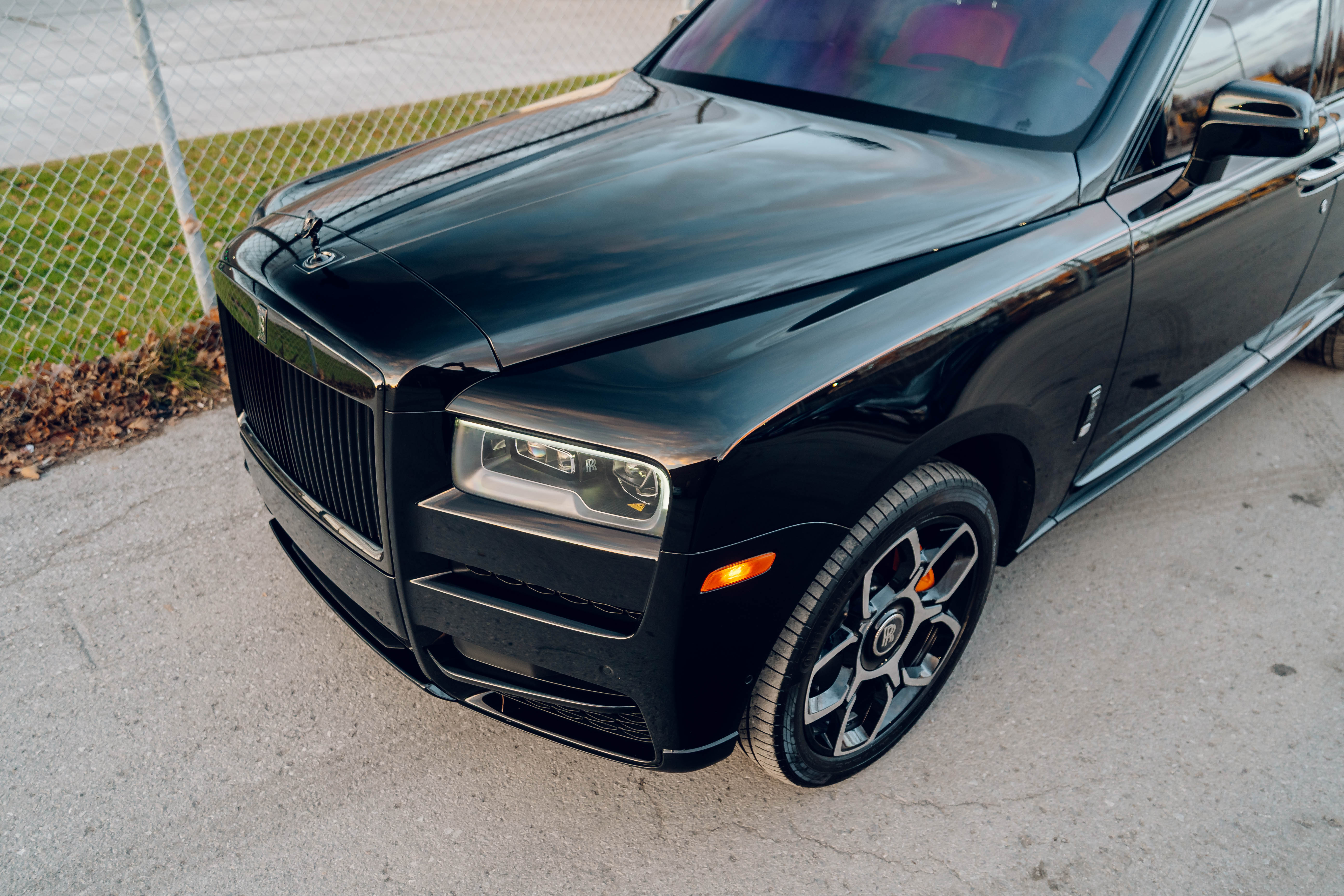 2023 Rolls Royce Cullinan Black Badge | Clean CARFAX | Star light head liner | Hand painted coach line in Tangerine Orange | Extended Tangerine Orange interior | Captain seat configuration | Rear glass partition |