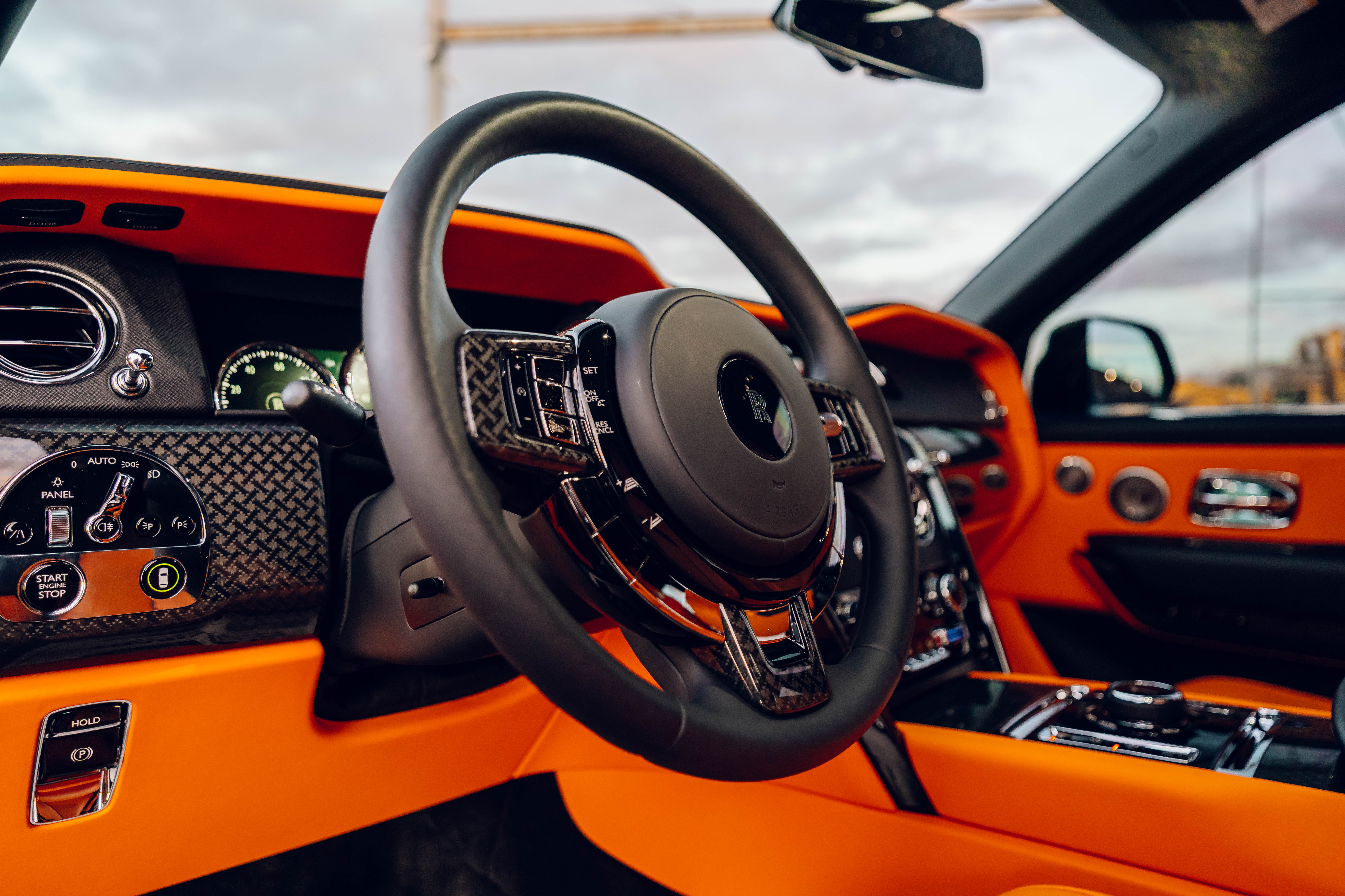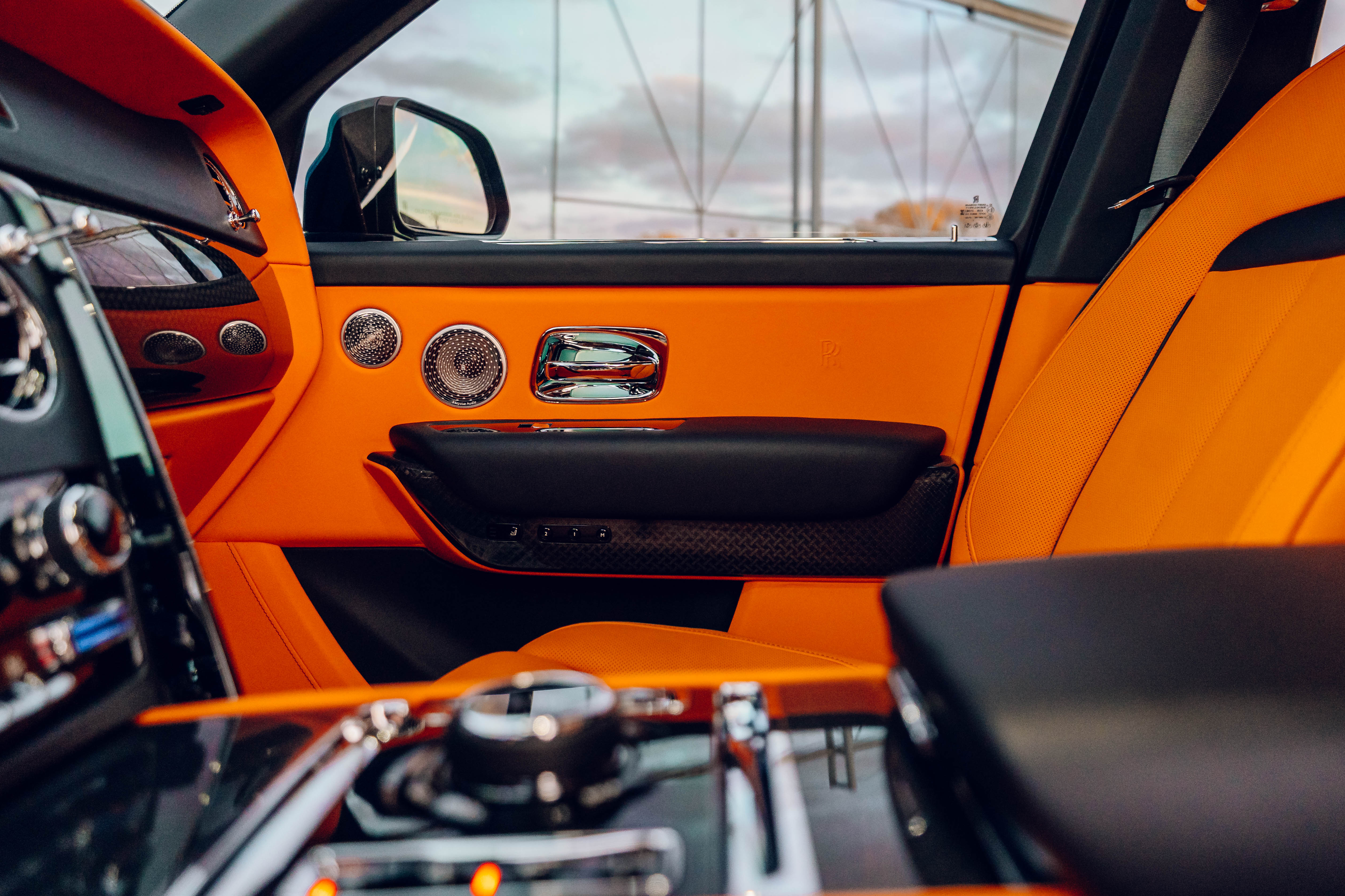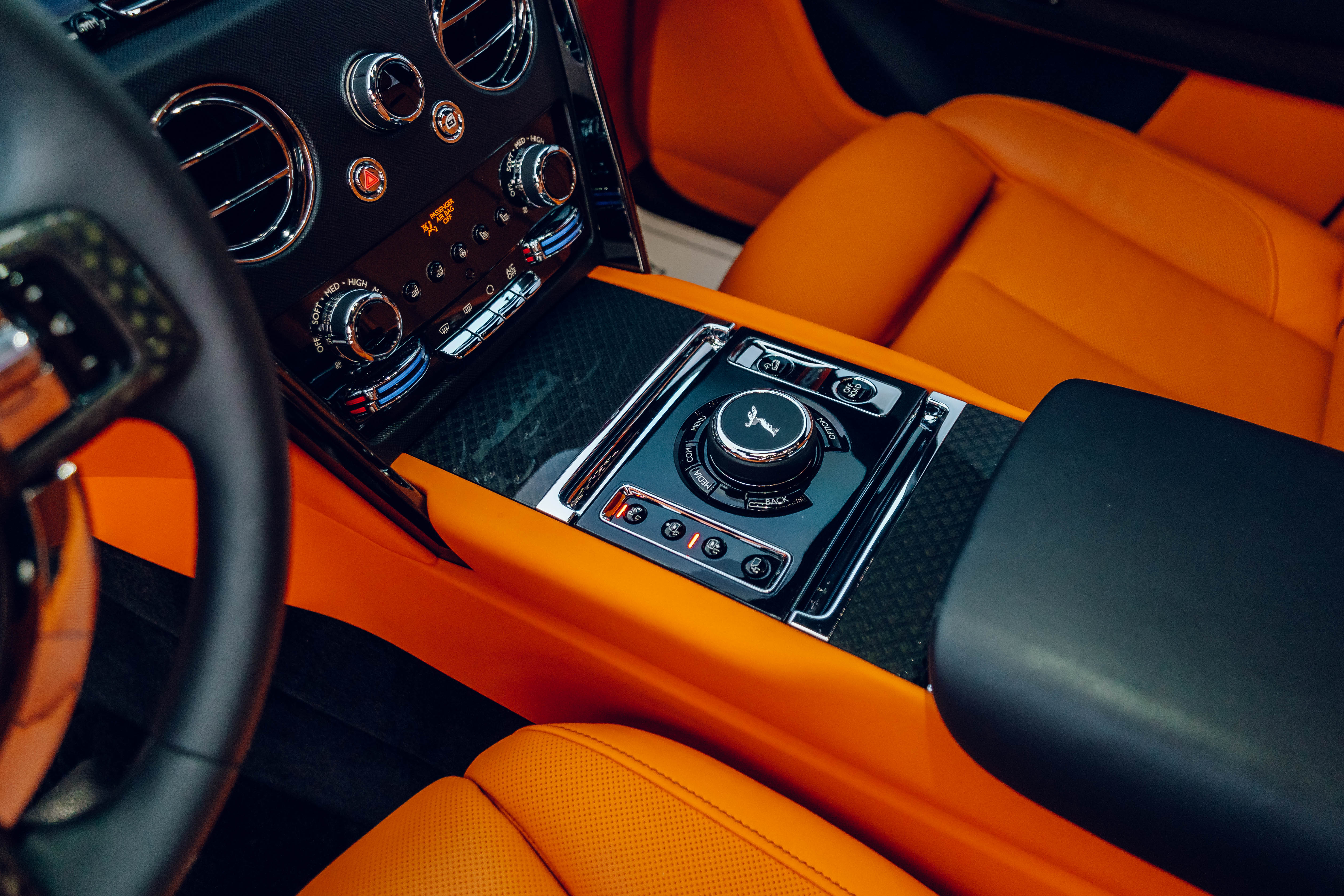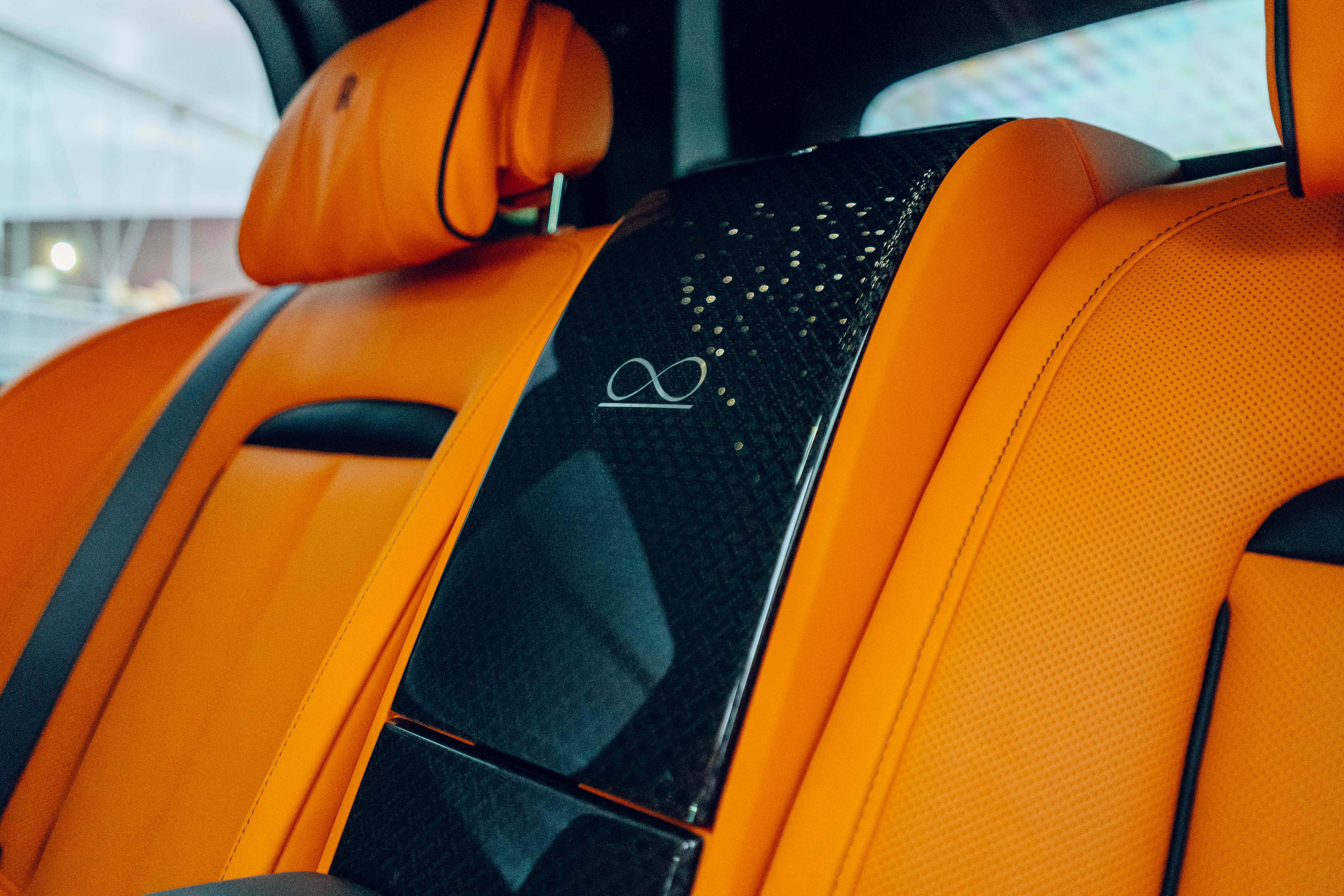2023 Rolls Royce Cullinan Black Badge | Clean CARFAX | Star light head liner | Hand painted coach line in Tangerine Orange | Extended Tangerine Orange interior | Captain seat configuration | Rear glass partition |